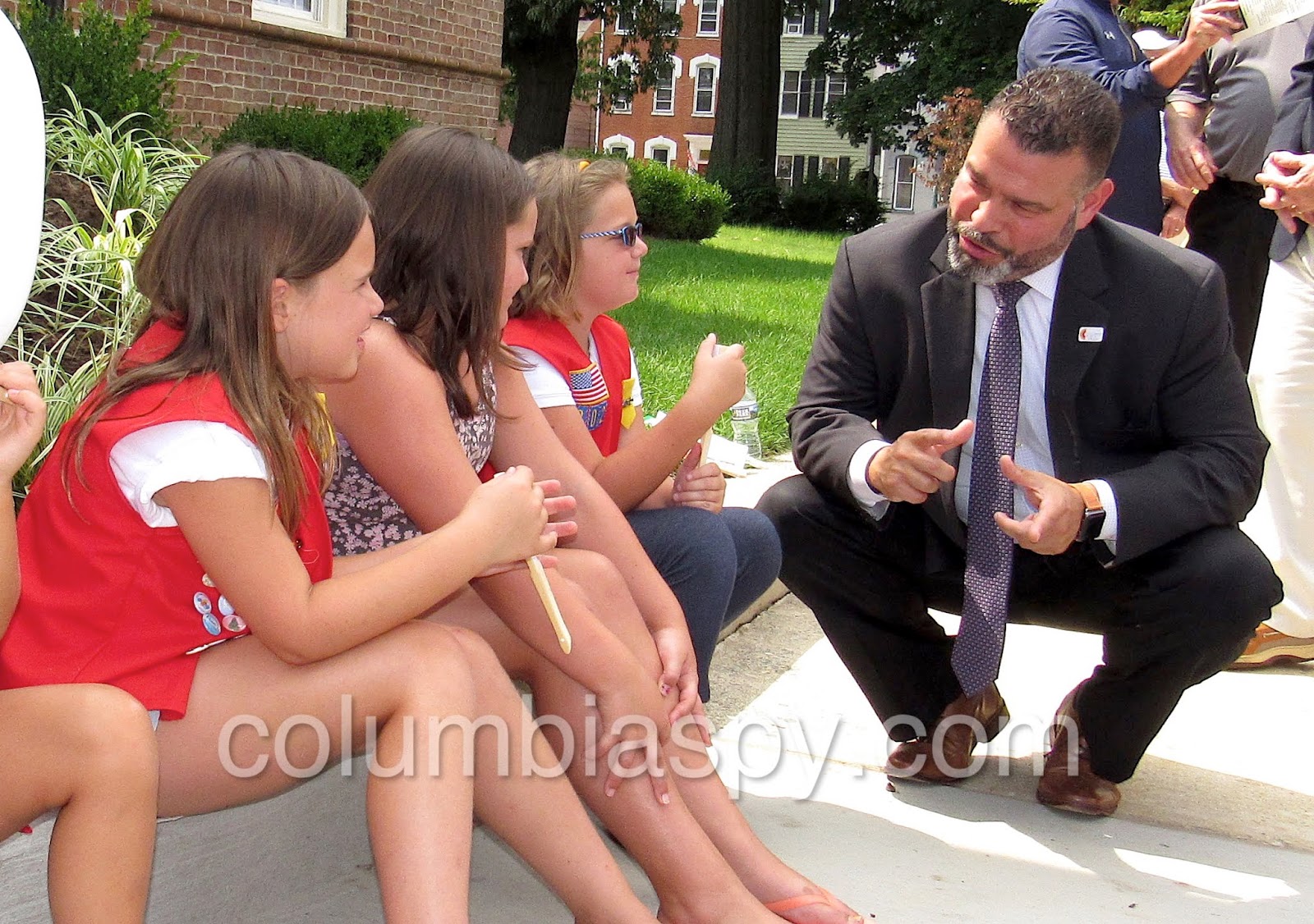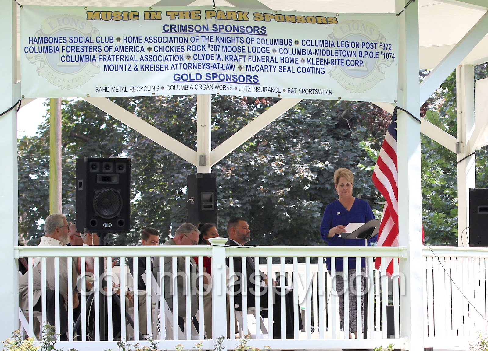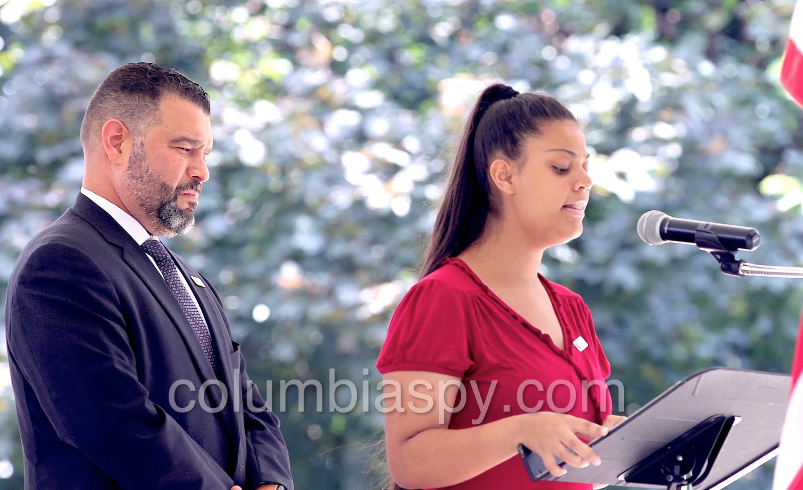 Melanie Cruz-Bernard sang the National Anthem. She is shown here flanked by Lancaster County Commissioner Craig Lehman (left), PA Secretary of Education Pedro Rivera, and Lancaster County Commissioner Joshua Parsons.