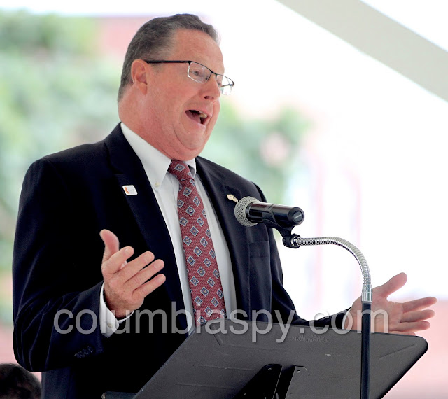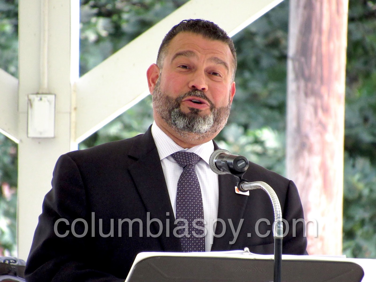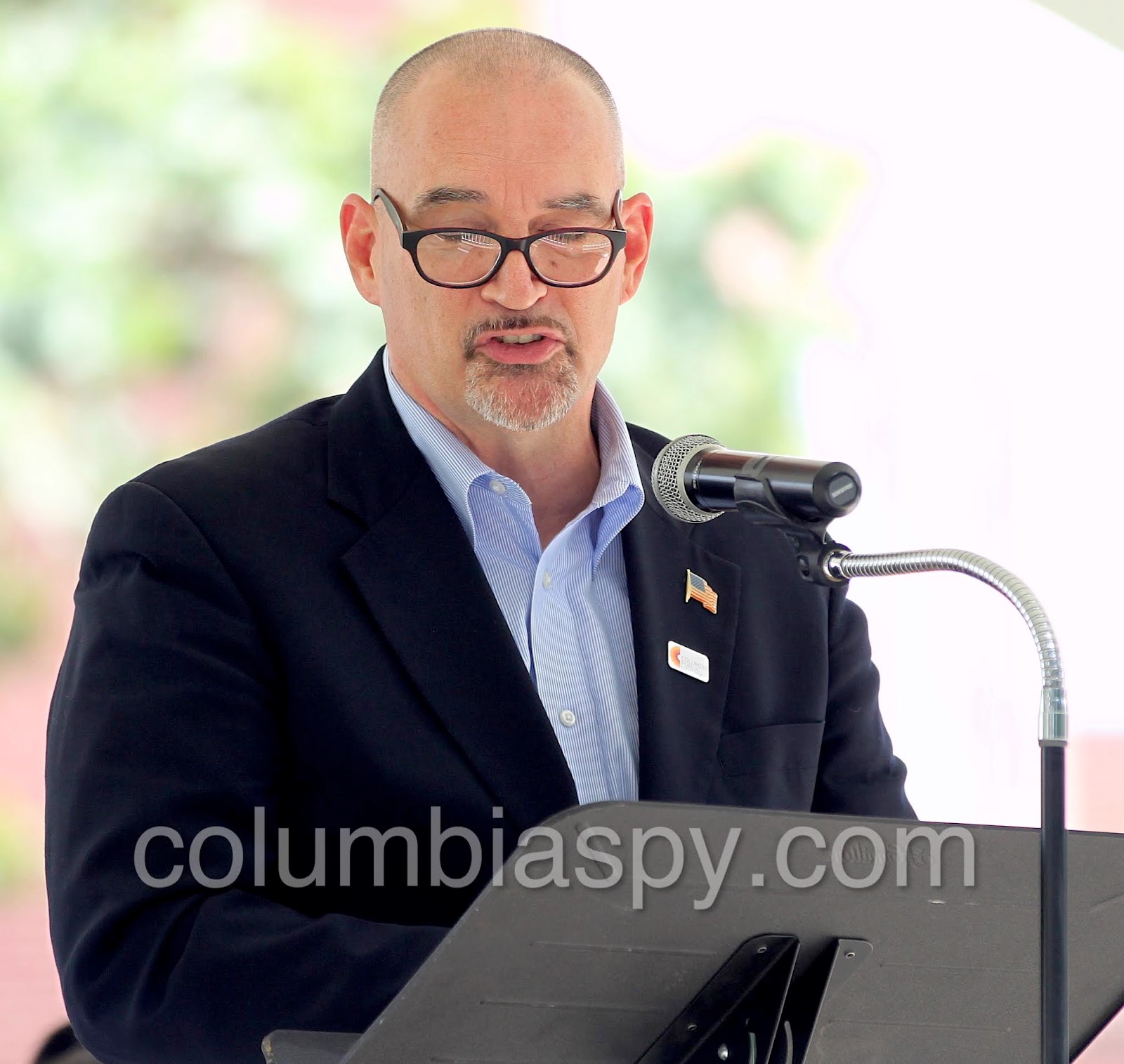 Melanie Cruz-Bernard sang the National Anthem. She is shown here flanked by Lancaster County Commissioner Craig Lehman (left), PA Secretary of Education Pedro Rivera, and Lancaster County Commissioner Joshua Parsons.