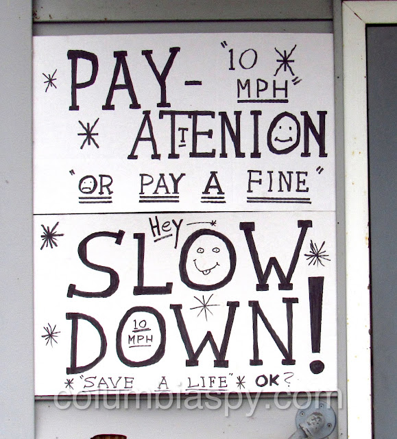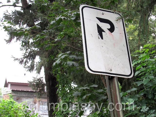Signs for ONE WAY, REGULATIONS – COLUMBIA RIVER PARK, and something about PARKING…maybe (?)