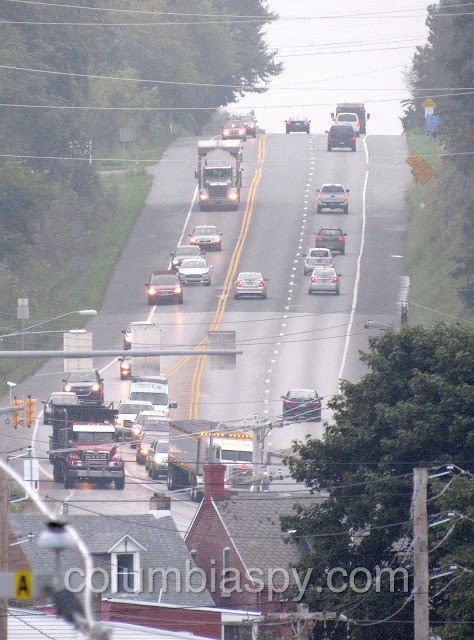 Shown above is the area where Avenue H meets 8th Street. At last week’s Columbia Borough Safety Committee meeting, the facilities manager of Susquehanna Glass met with committee members to try to find a solution to the problem. Ideas ranged from doing a traffic study to using smaller trailers to using tandem trailers. The issue was not resolved at the meeting.