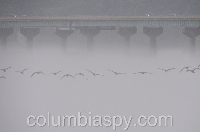 These Canada Geese flew a few feet over the Veterans Memorial Bridge and continued upriver.