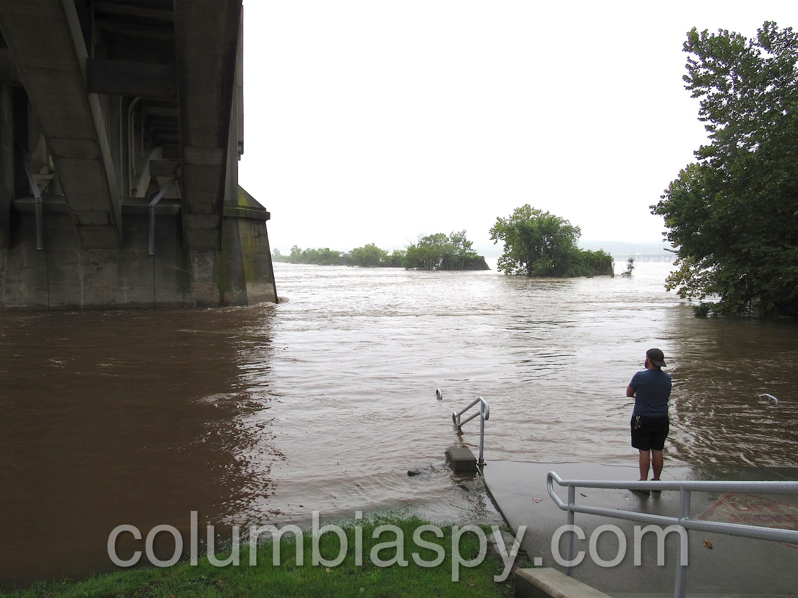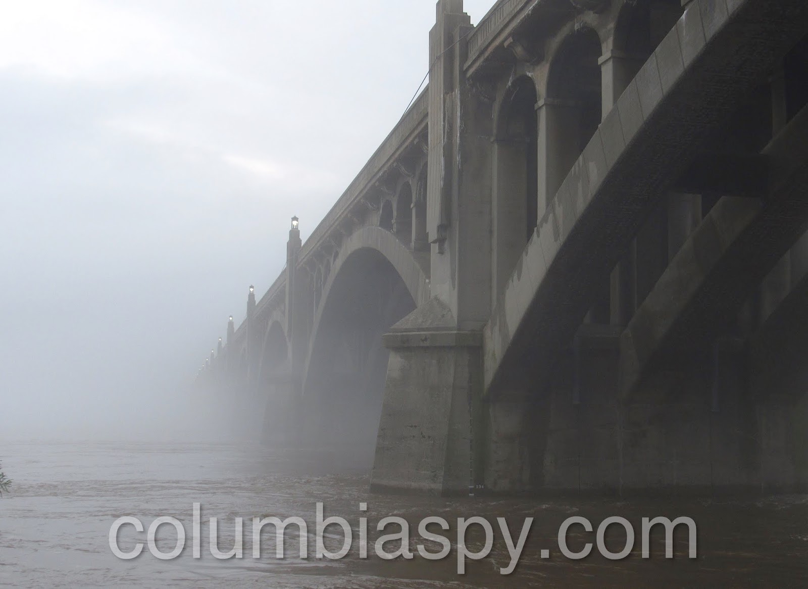 These Canada Geese flew a few feet over the Veterans Memorial Bridge and continued upriver.