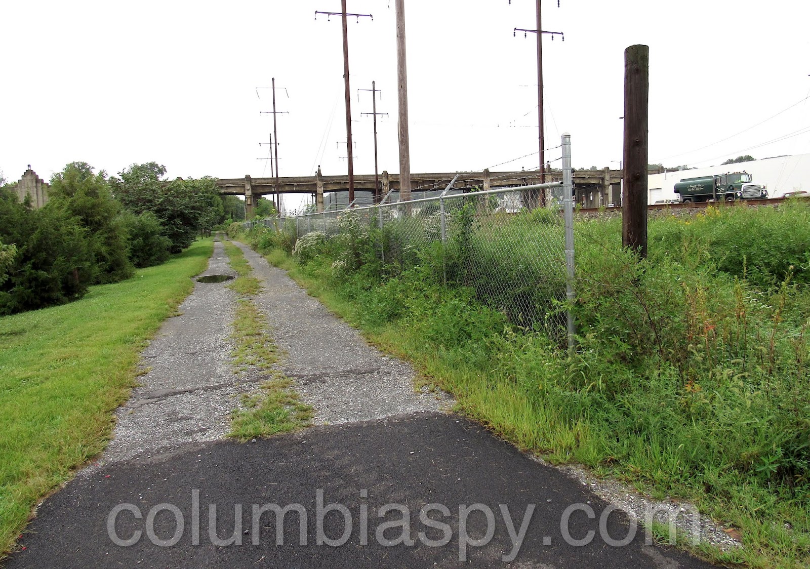 At the southern end of Heritage Drive (shown above), there’s nothing between the road and the railroad tracks, not even any weeds. A public safety issue?