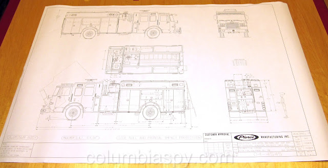 The final designs for the two new engines were presented by Glick sales representative Jake Bachman at the fire company building on Manor Street.  Firefighters gathered around a large table to view the designs and look on as Fritz signed the contracts.