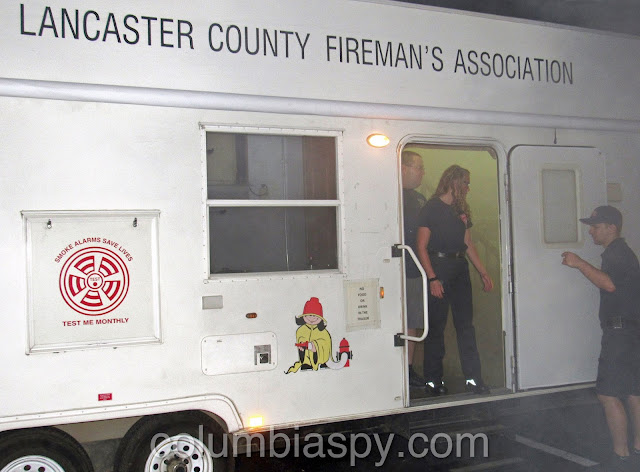 Riding on a fire engine is a fantasy for most kids, but last night it became a reality for those visiting Columbia Borough Fire Department’s Open House. Before climbing aboard the trucks, however, children collected several fire safety related items to fill the backpacks they received there. They also got close-up looks inside an ambulance, police car, and a QRS vehicle. Sparky the Fire Dog greeted guests, many of whom posed with him for photos. Although activities were designed to be fun, education remained at the forefront to teach children (and adults) about fire prevention and safety. Several kids even braved entering a fire safety trailer filled with smoke to learn how to escape a fire. Free food and refreshments were also served at the event.