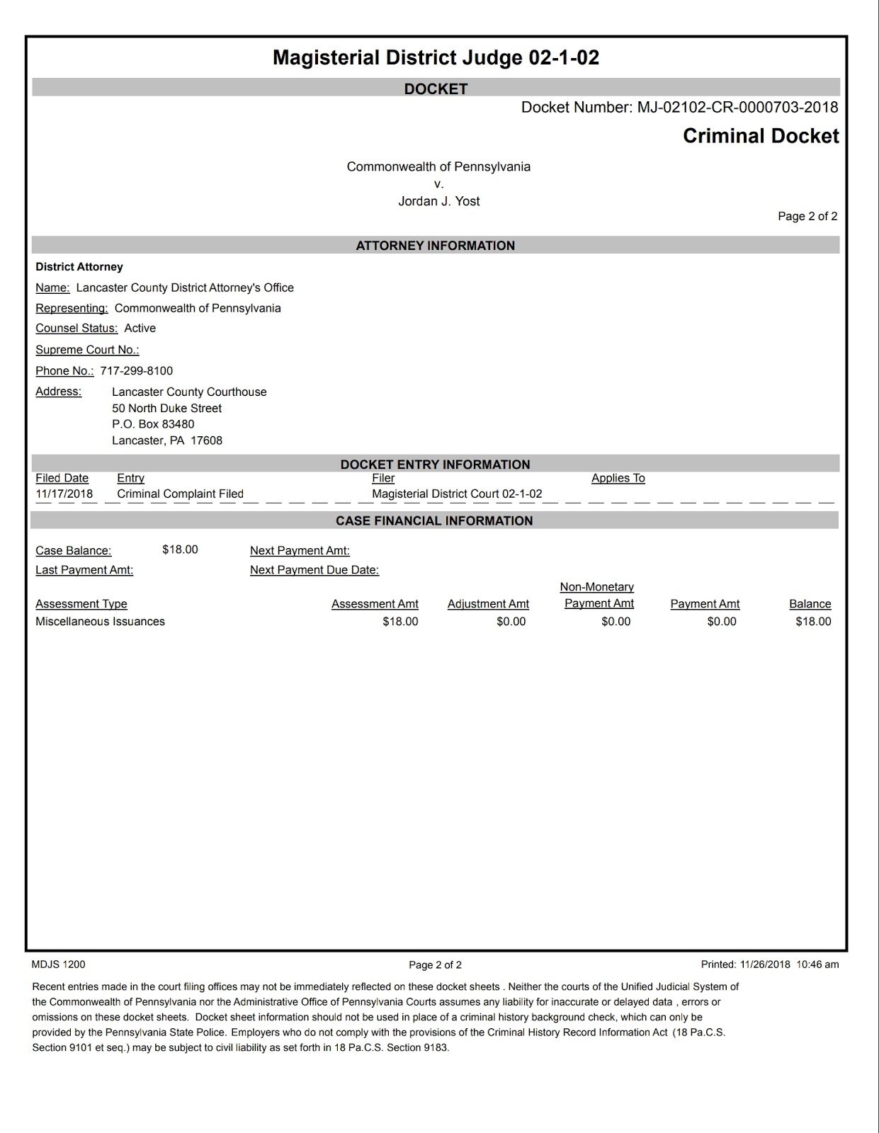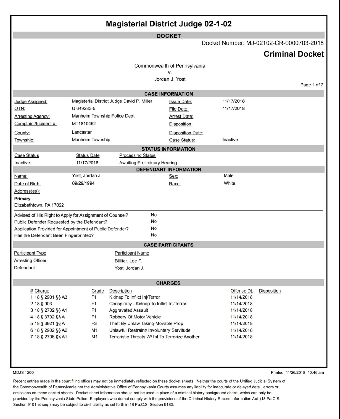 DOCKET: Commonwealth of PA v. Jordan J. Yost Share this: Click to share on X (Opens in new window) X Click to share on Facebook (Opens in new window) Facebook More Click to share on Bluesky (Opens in new window) Bluesky Click to share on X (Opens in new window) X Like Loading... Related