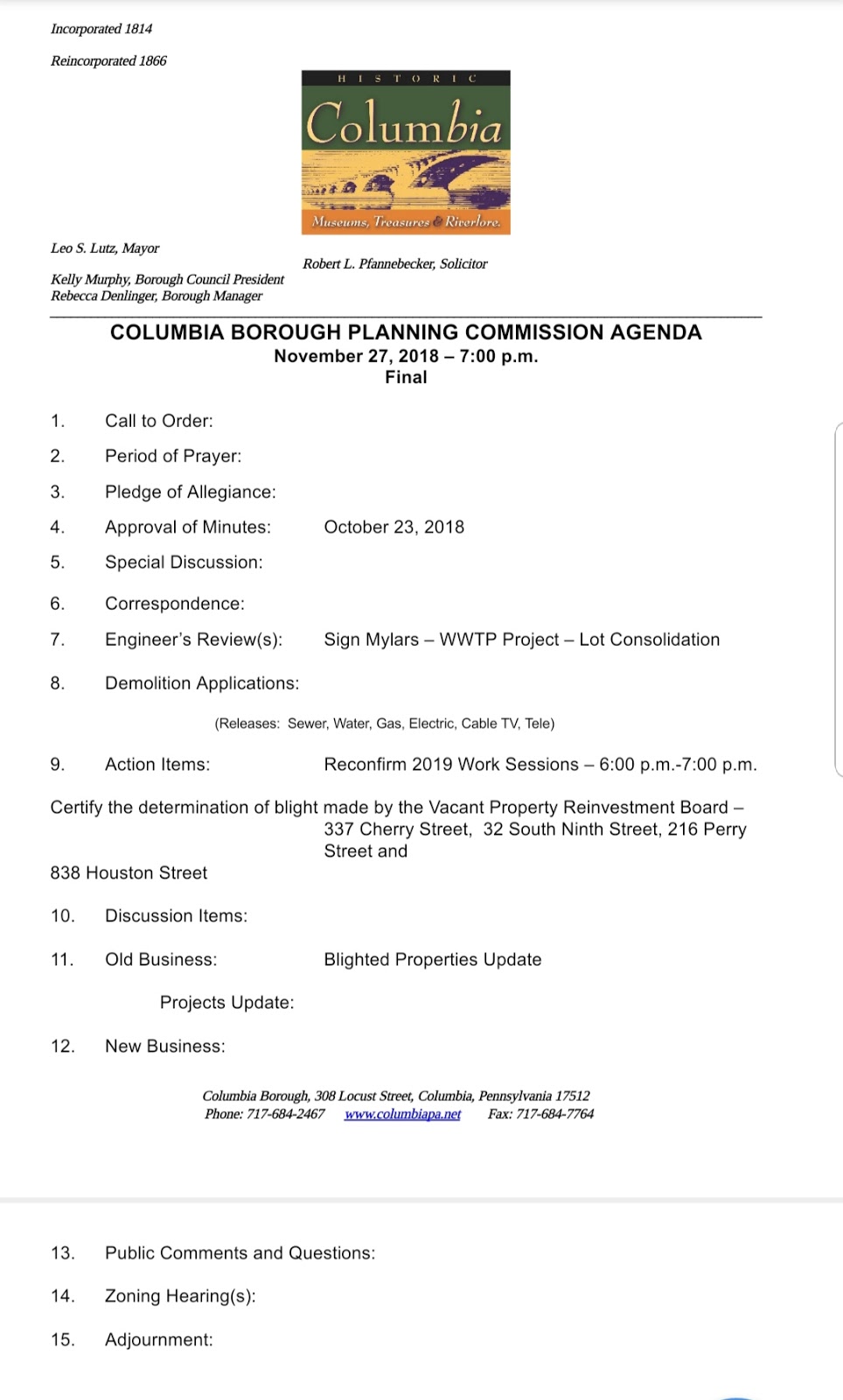 Final Agenda – Planning Commission Meeting, November 27, 2018 Share this: Share on X (Opens in new window) X Share on Facebook (Opens in new window) Facebook More Share on Bluesky (Opens in new window) Bluesky Share on X (Opens in new window) X Like Loading... Related