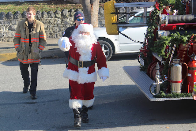 Santa Claus came to town Saturday morning escorted by first responders from several local departments in a parade that started at the Fire Department building on Manor Street. After arriving at the Columbia Library, Santa greeted the waiting crowd of children and adults and then entered the building to hear Christmas wishes from children.