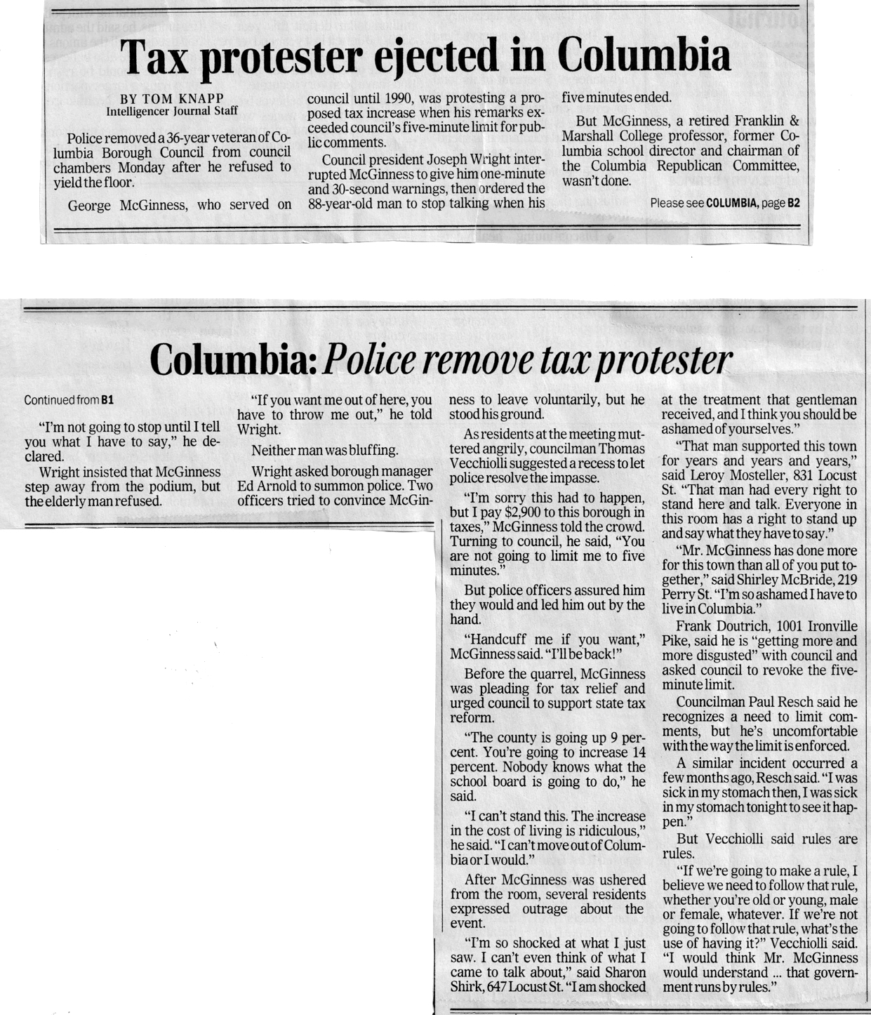16 years ago: Tax protester ejected from Columbia Borough Council Meeting