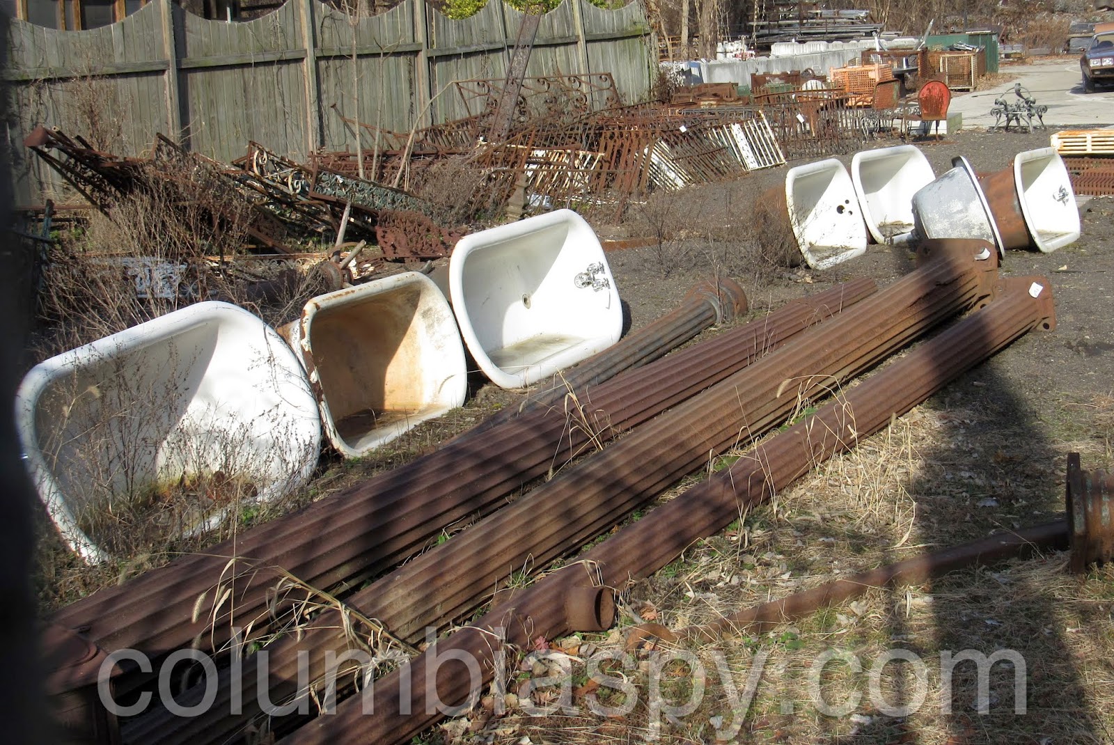 This is where the dumpsters hide, right next to the train cars.