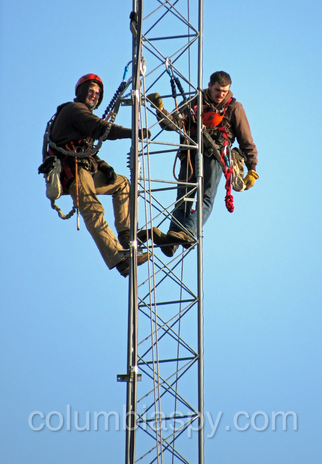 These two men were doing repairs on the communications tower next to the COLA building.