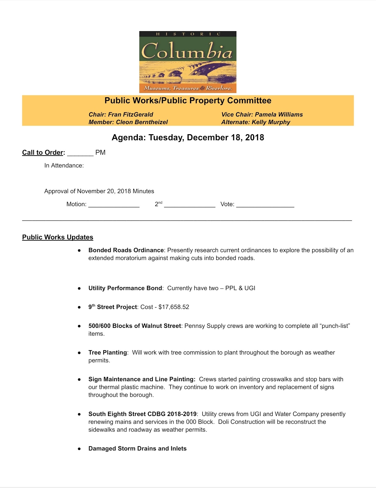 Agenda – Public Works/Public Property Meeting – December 18, 2018 Share this: Click to share on X (Opens in new window) X Click to share on Facebook (Opens in new window) Facebook More Click to share on Bluesky (Opens in new window) Bluesky Click to share on X (Opens in new window) X Like Loading... Related