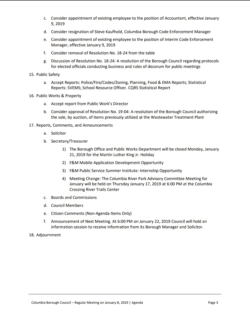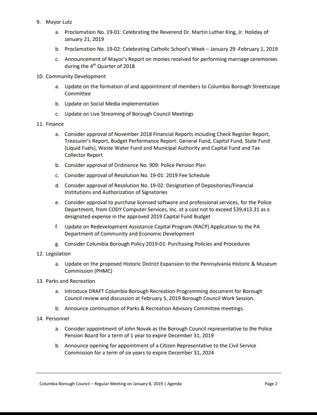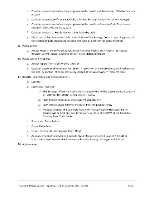Draft Agenda – Borough Council Meeting, January 8, 2019 Minutes of December 2018 meetings can be downloaded HERE. Share this: Share on X (Opens in new window) X Share on Facebook (Opens in new window) Facebook More Share on Bluesky (Opens in new window) Bluesky Share on X (Opens in new window) X Like Loading... Related