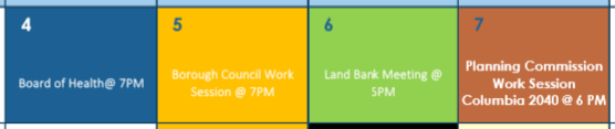 Columbia Borough Meetings – Week of March 4, 2019 (Click/tap to enlarge.) Share this: Click to share on X (Opens in new window) X Click to share on Facebook (Opens in new window) Facebook More Click to share on Bluesky (Opens in new window) Bluesky Click to share on X (Opens in new window) X Like Loading... Related