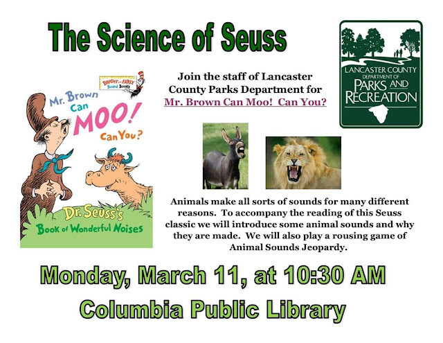 The Science of Seuss at the Library, Monday, March 11, at 10:30 a.m. Share this: Click to share on X (Opens in new window) X Click to share on Facebook (Opens in new window) Facebook More Click to share on Bluesky (Opens in new window) Bluesky Click to share on X (Opens in new window) X Like Loading... Related
