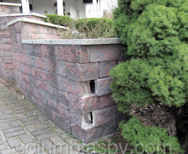 Blocks missing at the clock plaza due to a vehicle accident or two