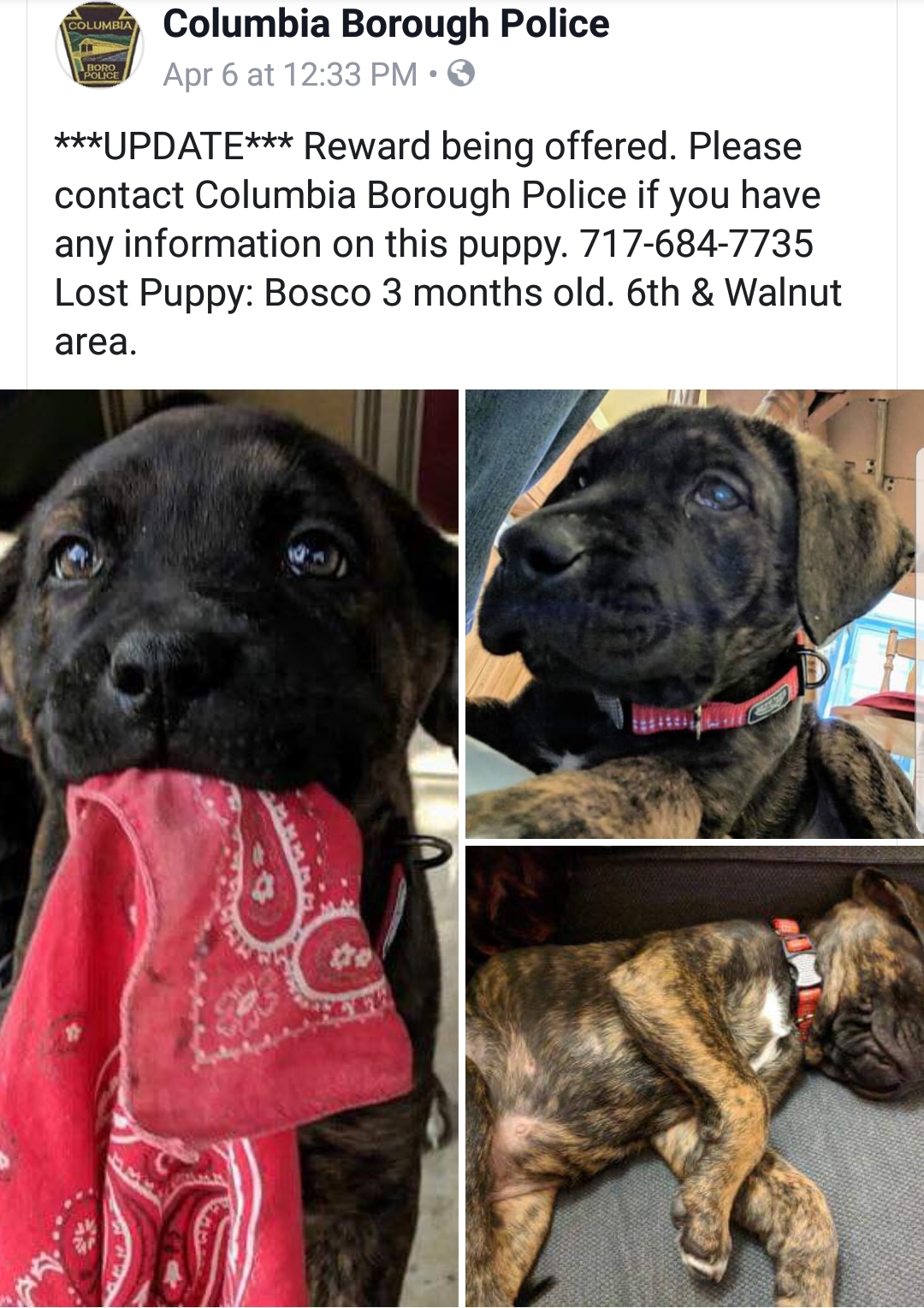 Reward being offered in missing dog case Share this: Share on X (Opens in new window) X Share on Facebook (Opens in new window) Facebook More Share on Bluesky (Opens in new window) Bluesky Share on X (Opens in new window) X Like Loading... Related