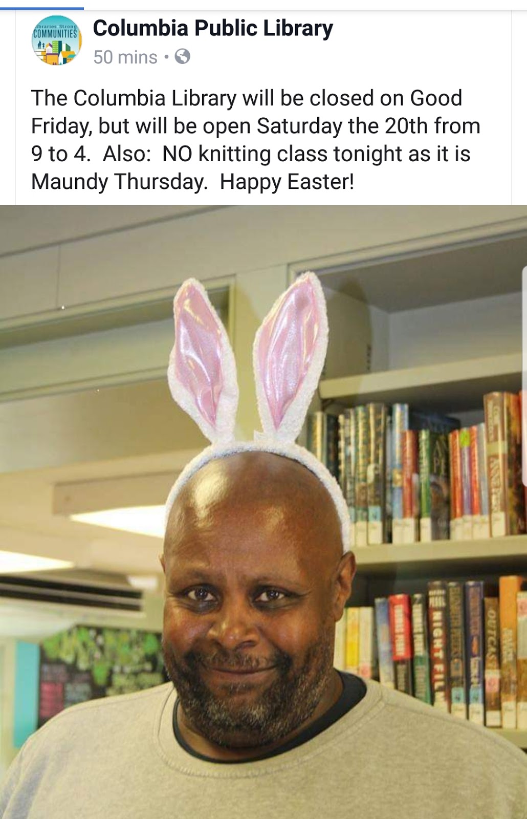 Library closed Good Friday, open Saturday, April 20 Share this: Share on X (Opens in new window) X Share on Facebook (Opens in new window) Facebook More Share on Bluesky (Opens in new window) Bluesky Share on X (Opens in new window) X Like Loading... Related