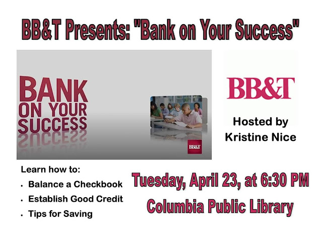 BB&T Presents "Bank on Your Success" at the Library Tuesday, April 23 Share this: Share on X (Opens in new window) X Share on Facebook (Opens in new window) Facebook More Share on Bluesky (Opens in new window) Bluesky Share on X (Opens in new window) X Like Loading... Related