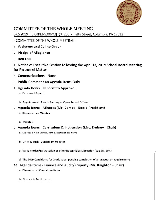 Agenda – Columbia School Board Meeting of the Whole – May 2, 2019 Share this: Share on X (Opens in new window) X Share on Facebook (Opens in new window) Facebook More Share on Bluesky (Opens in new window) Bluesky Share on X (Opens in new window) X Like Loading... Related
