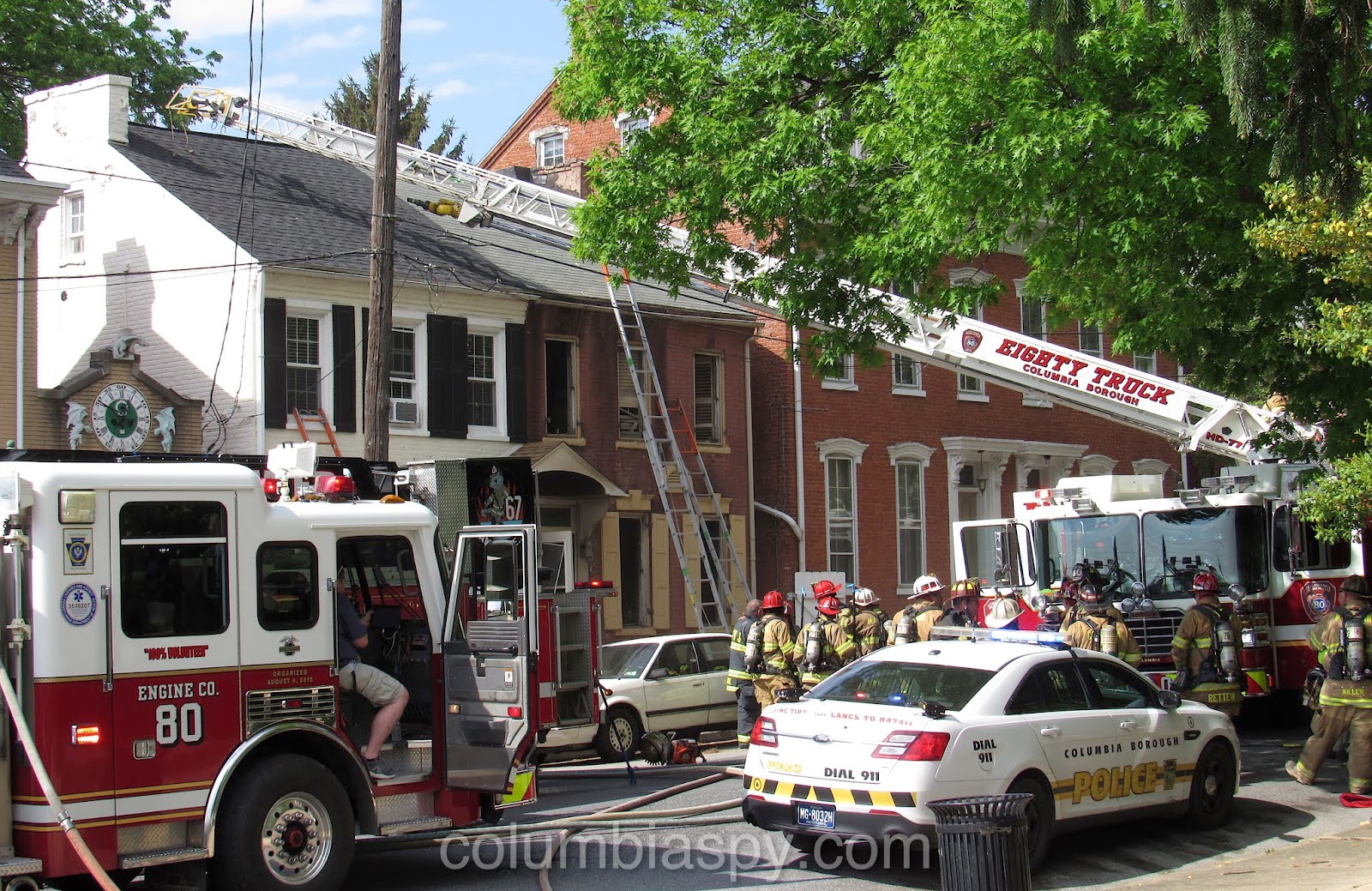 Several fire departments and other emergency personnel responded to a house fire at 521 Locust Street at about 3:30 p.m. today. Firefighters quickly extinguished the fire that also threatened an adjoining house and another neighboring house at 523 Locust. The fire was believed to have been caused by unattended cooking. WGAL reports that three firefighters were hurt: two from electrical shocks and one from heat exhaustion.