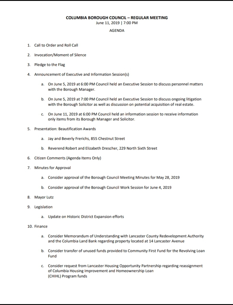 0 thoughts on “Agenda – Columbia Borough Council Regular Meeting, June 11, 2019”