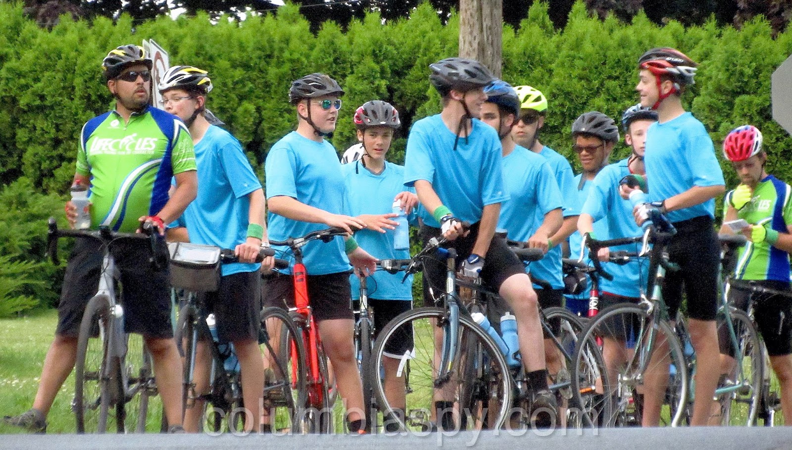 The Life Cycles Team made a few stops during a ride through town on Saturday. According to their website: “The mission of LIFECYCLES is to build young men of character in a Christ-centered bicycle touring adventure experience for urban teens with a mentoring program to guide them into adulthood.”
