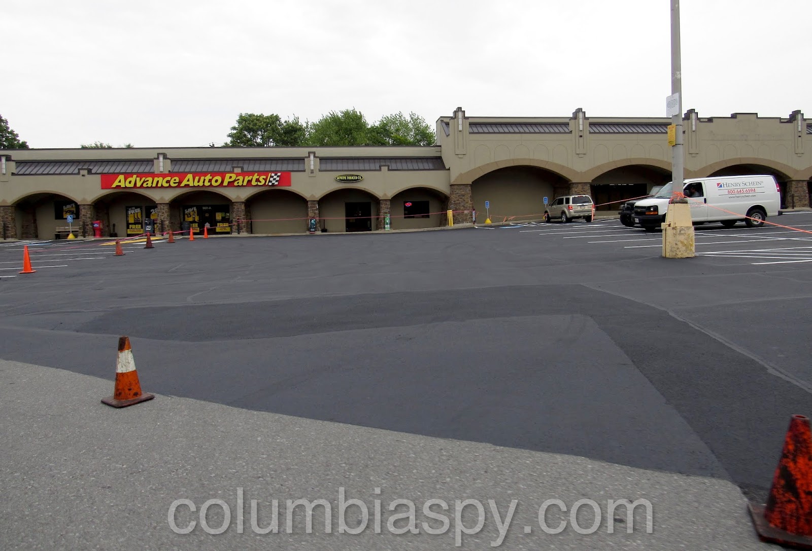 A few photos of the newly sealed Columbia Plaza parking lot…