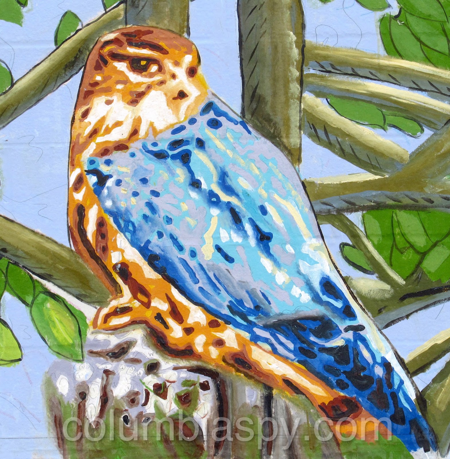 Newly alighted on the mural