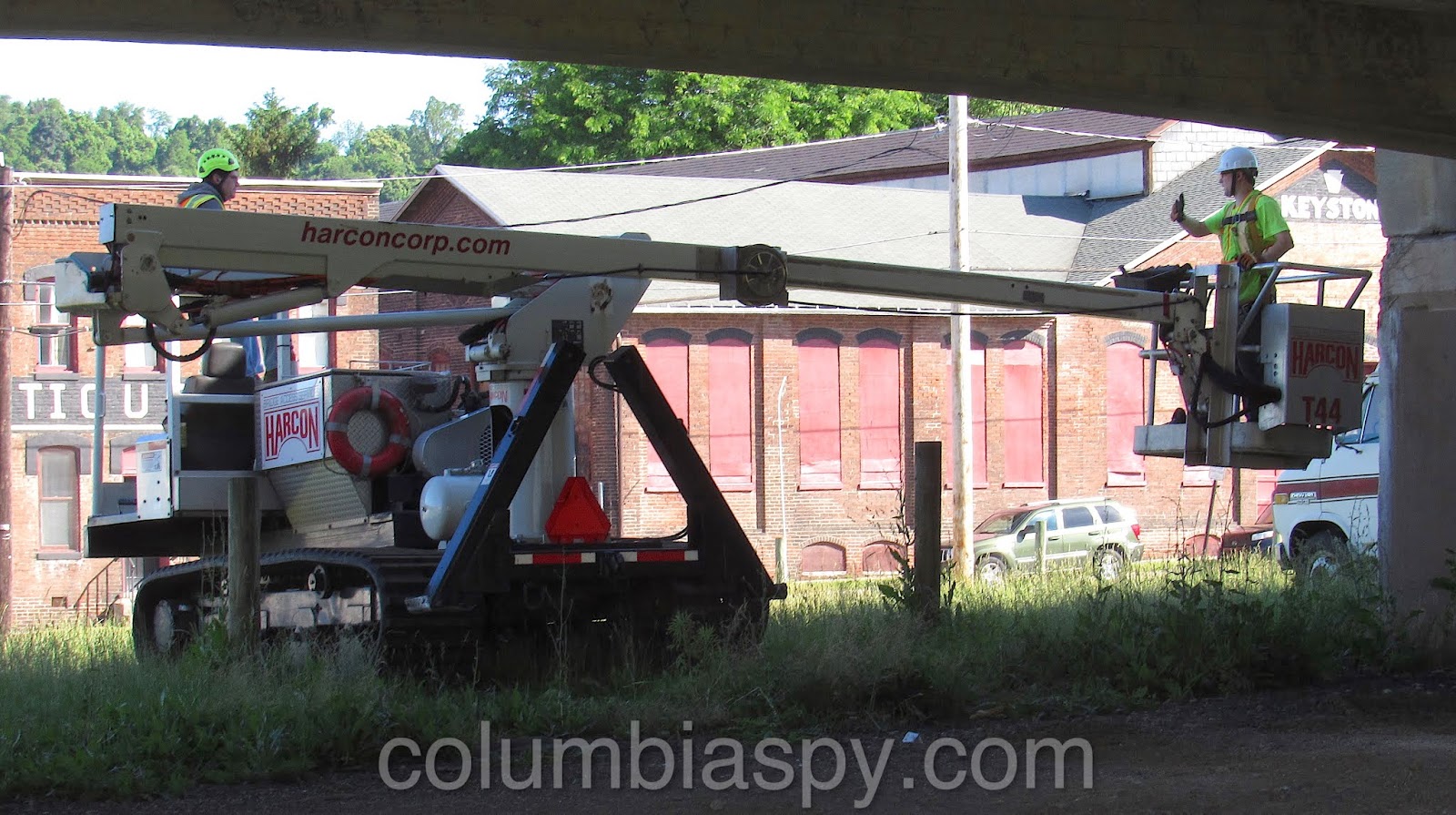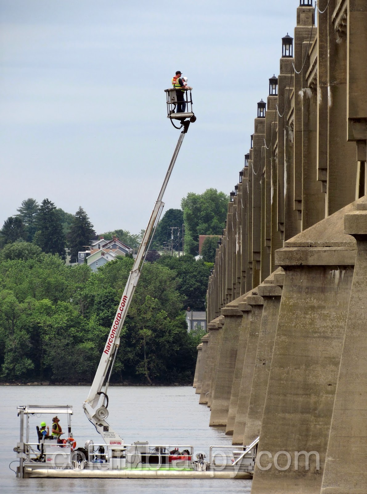 Bridge inspectors used Harcon equipment this week to inspect the Veterans Memorial Bridge.