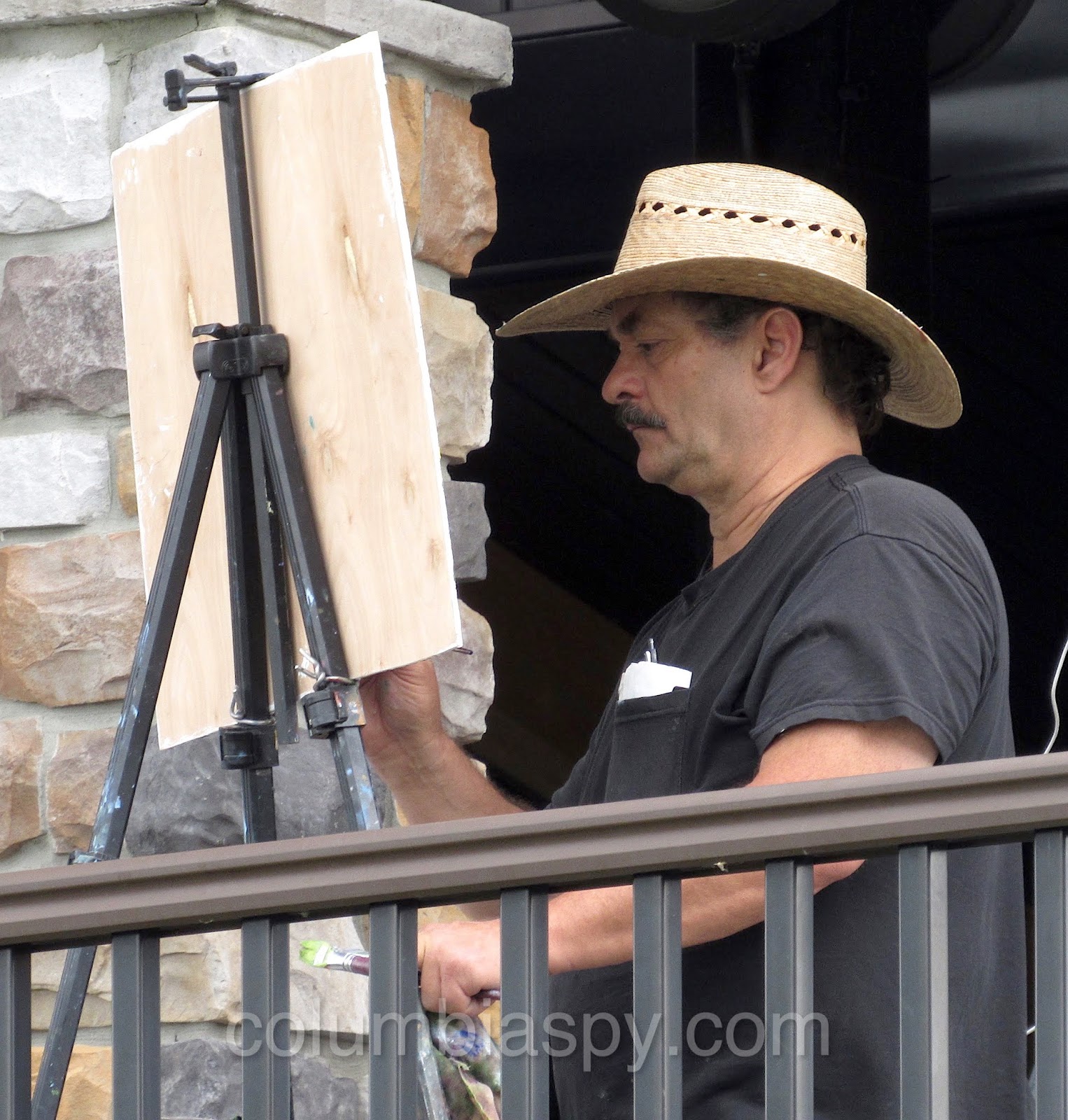 Artist Jay Dombach paints a river scene Sunday afternoon.