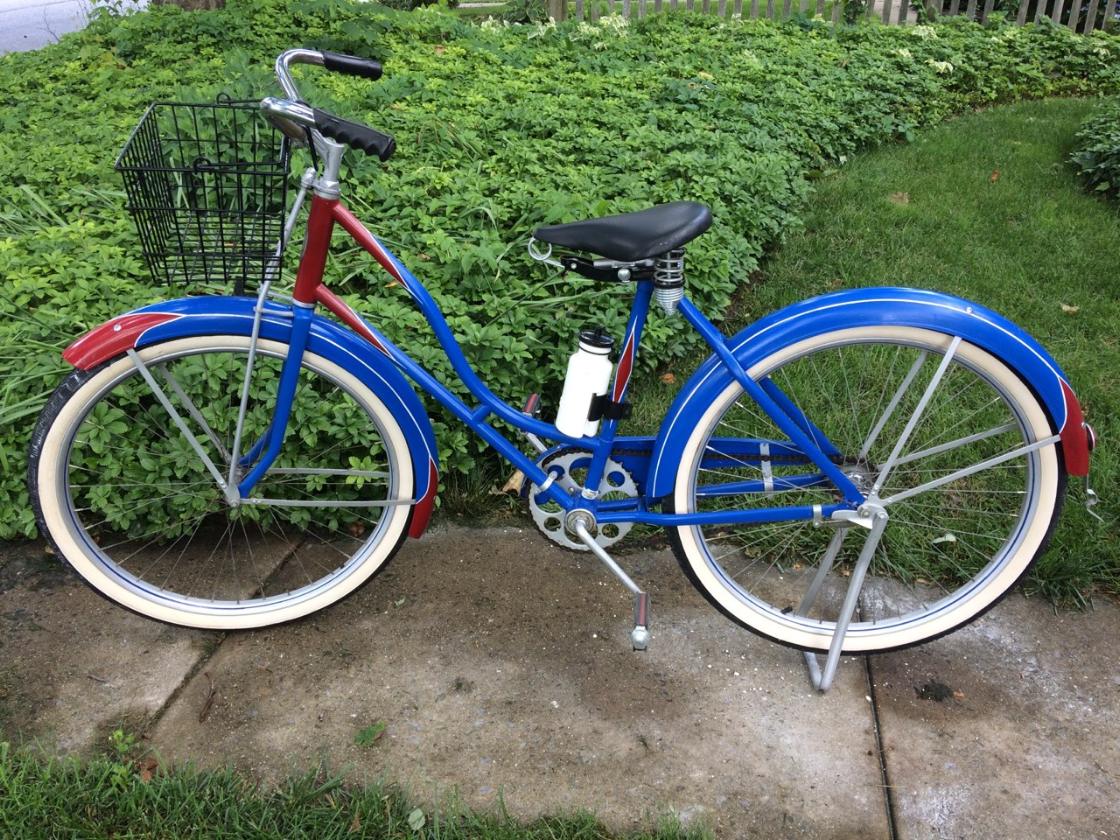 The Columbia Concerned Citizens Association is raffling off this red, white and blue Klinedinst Special antique ladies bicycle.