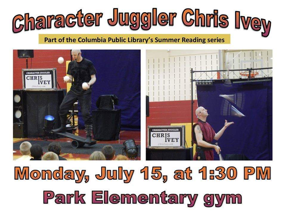 See Character Juggler Chris Ivey July 15 at Park Elementary Gym Share this: Share on X (Opens in new window) X Share on Facebook (Opens in new window) Facebook More Share on Bluesky (Opens in new window) Bluesky Share on X (Opens in new window) X Like Loading... Related