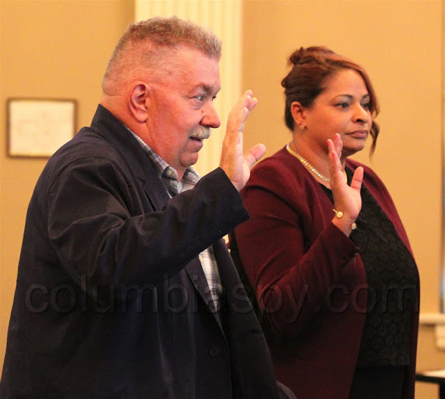 Barry Ford taking the oath office, along with Iris Garrido, for the Columbia Borough School Board in 2016.