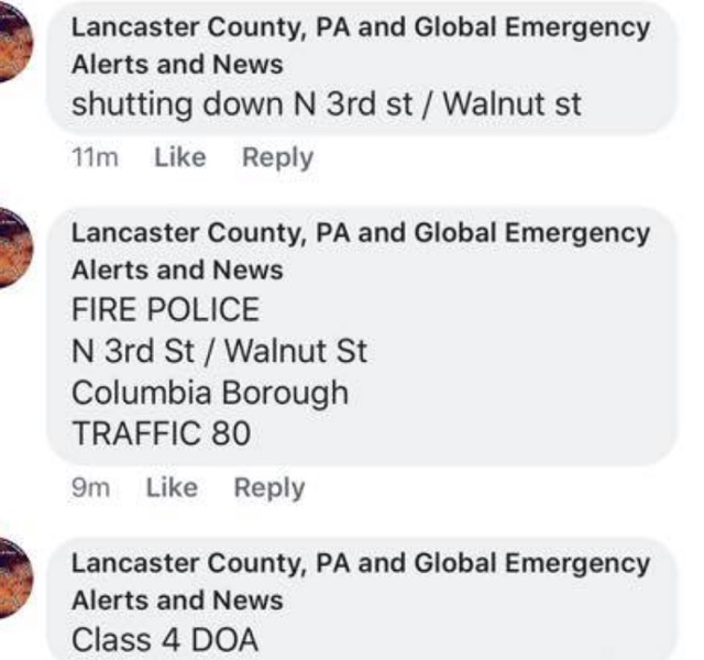 Emergency responders were dispatched to North Third and Walnut streets about 8:11 p.m., according to Lancaster County-Wide Communication.