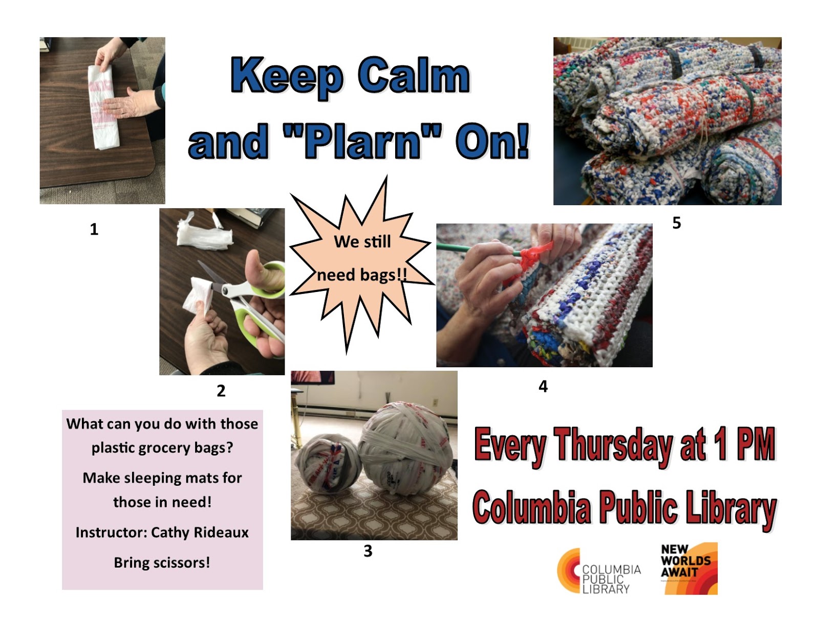 Plarn with Cathy – Thursdays at the Library Share this: Share on X (Opens in new window) X Share on Facebook (Opens in new window) Facebook More Share on Bluesky (Opens in new window) Bluesky Share on X (Opens in new window) X Like Loading... Related