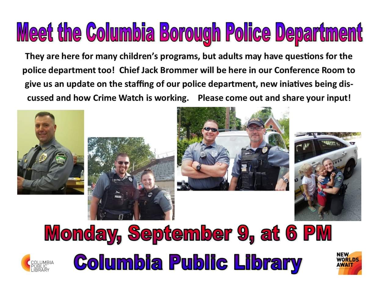 Meet the Police – Monday, September 9, at the Library Share this: Share on X (Opens in new window) X Share on Facebook (Opens in new window) Facebook More Share on Bluesky (Opens in new window) Bluesky Share on X (Opens in new window) X Like Loading... Related
