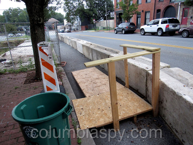 On/off-ramp at our temporary sidewalk at the bottom of Locust