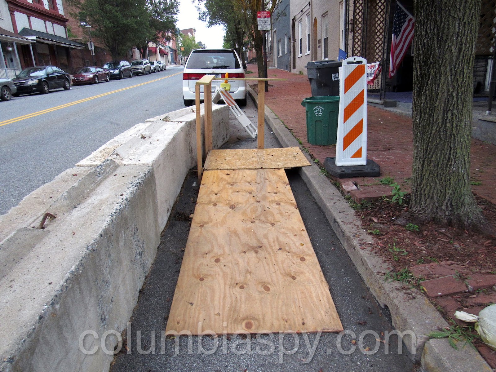 On/off-ramp at our temporary sidewalk at the bottom of Locust