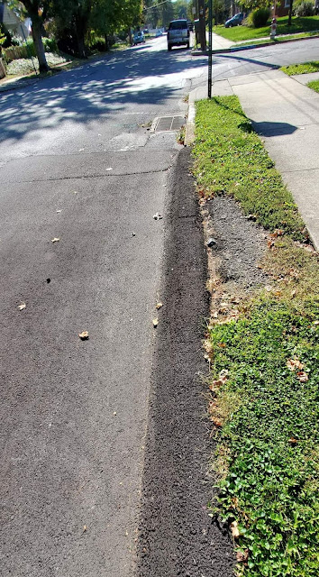 The four photos below show an interesting way to repair a curb – part concrete, part blacktop: