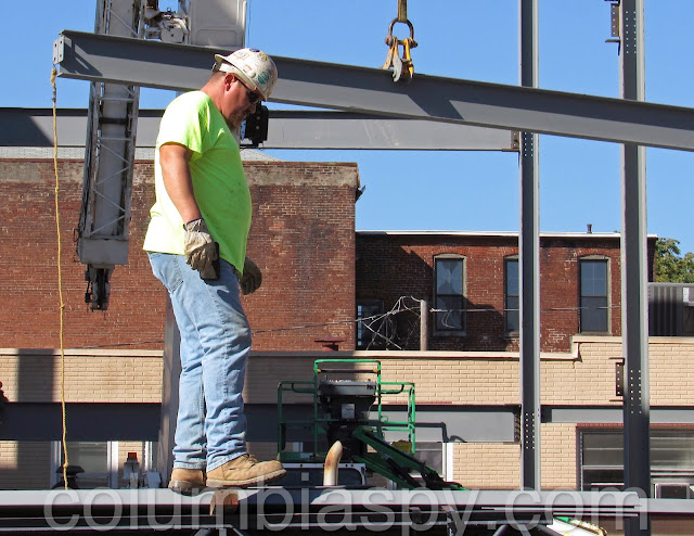 The 400 block of Locust was closed off for two days this week to accommodate the crane and other vehicles at the construction site there.