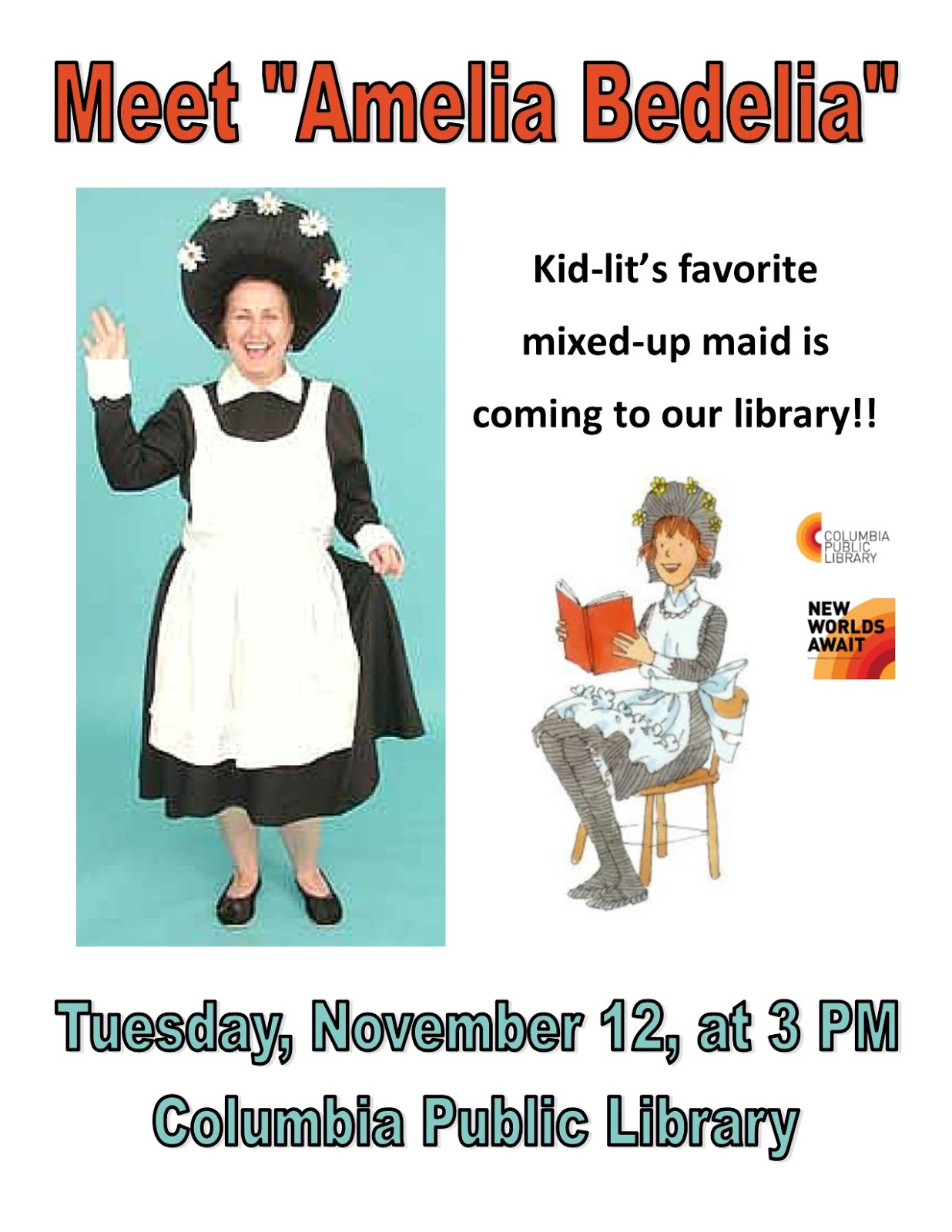 Amelia Bedelia at the Library – Tuesday, November 12 Share this: Share on X (Opens in new window) X Share on Facebook (Opens in new window) Facebook More Share on Bluesky (Opens in new window) Bluesky Share on X (Opens in new window) X Like Loading... Related