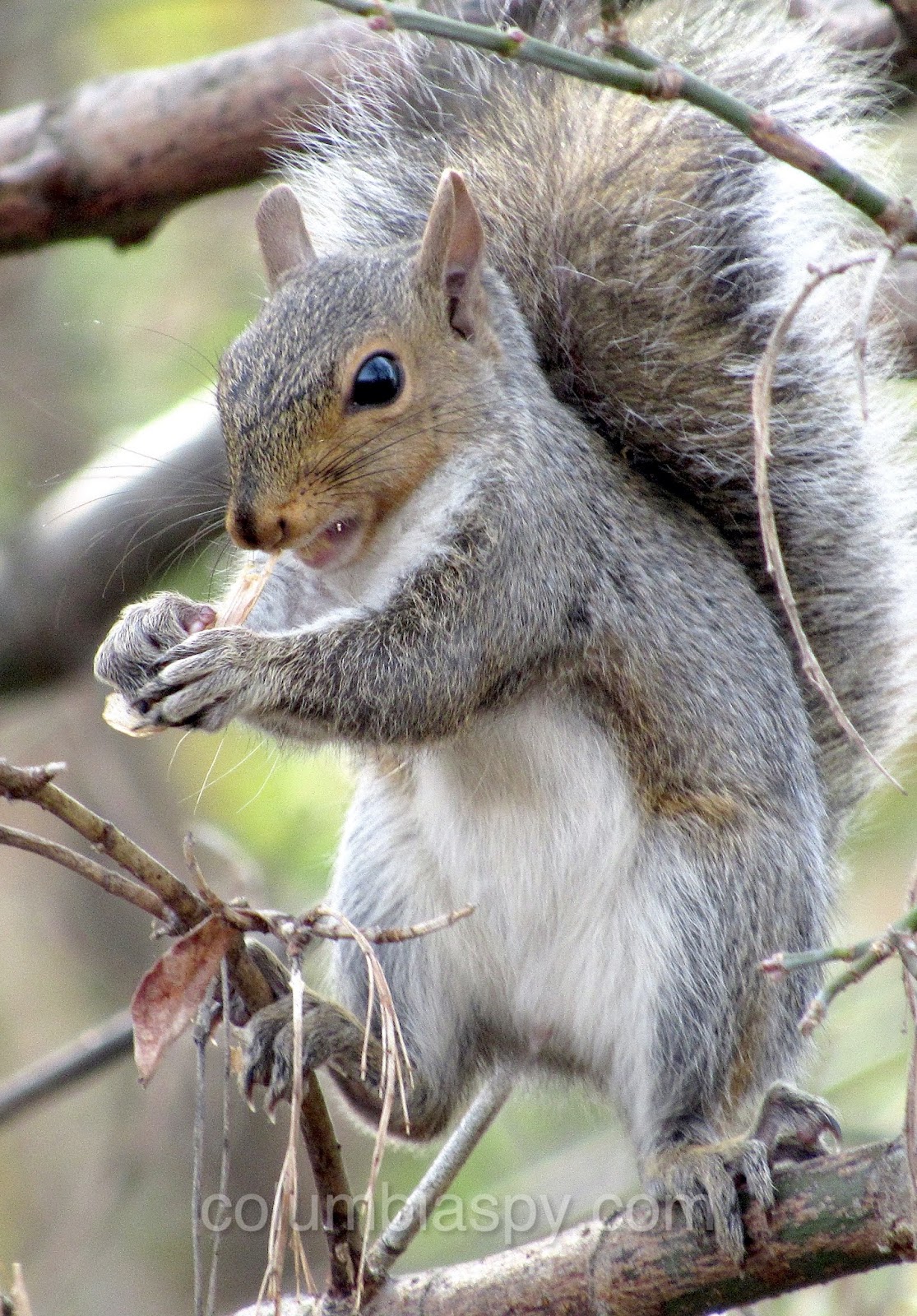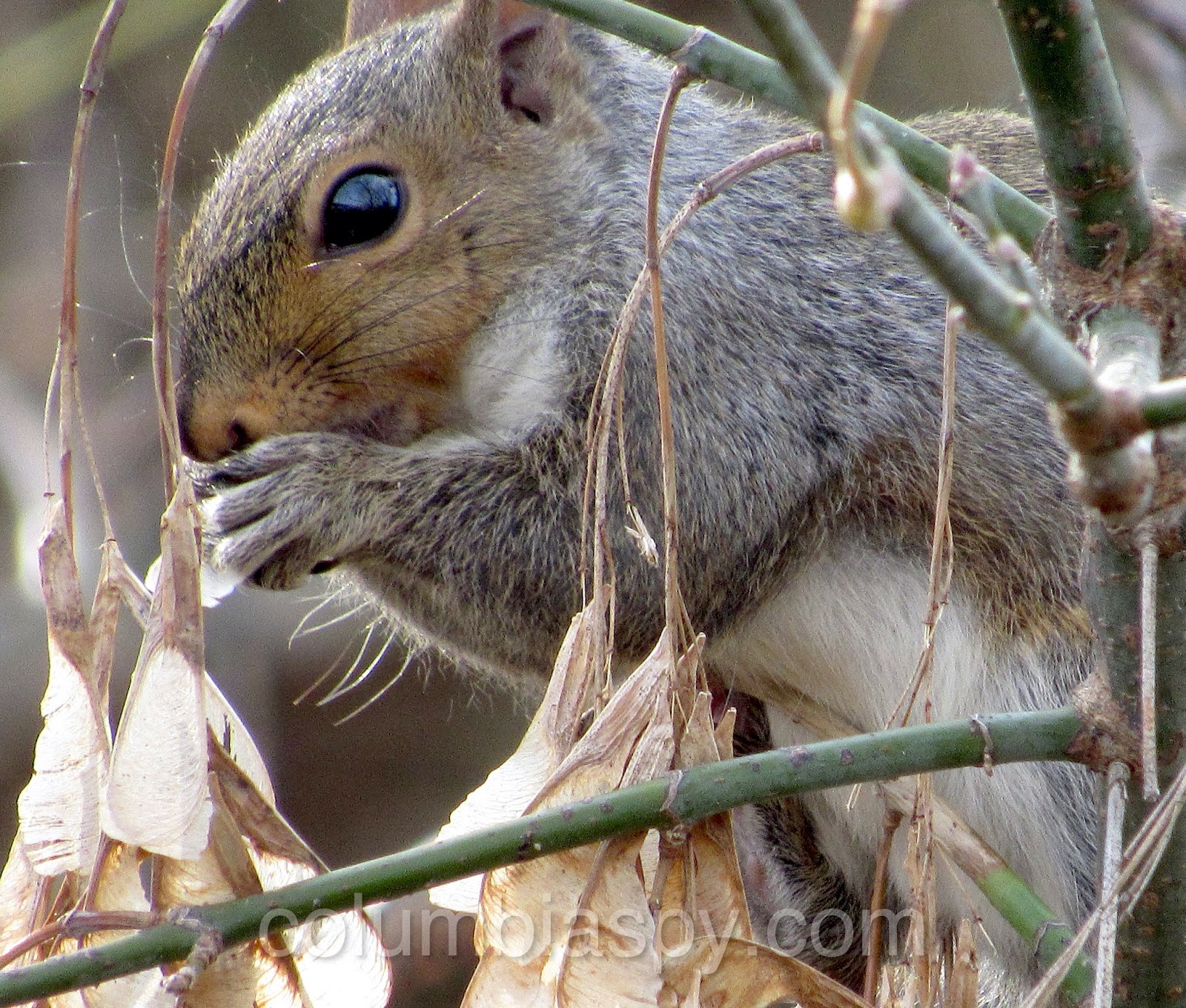 When nuts aren’t available, he’ll settle for maple tree seeds, as shown here.