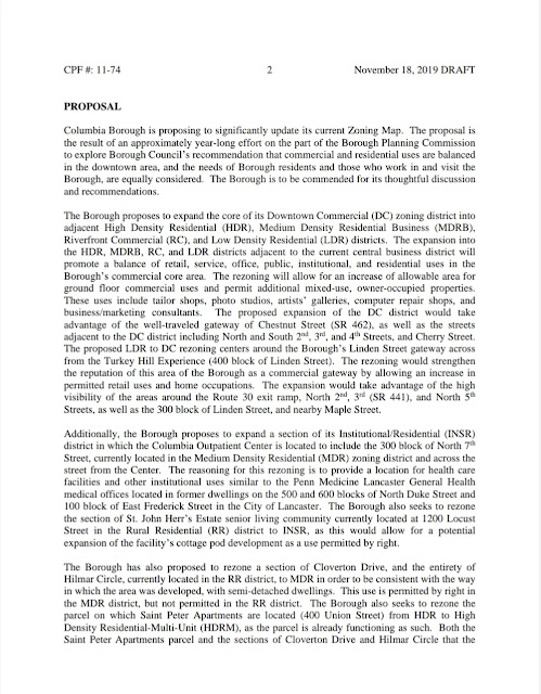 More information on the proposed rezoning is posted on the Columbia Borough website HERE. (Scroll down.)