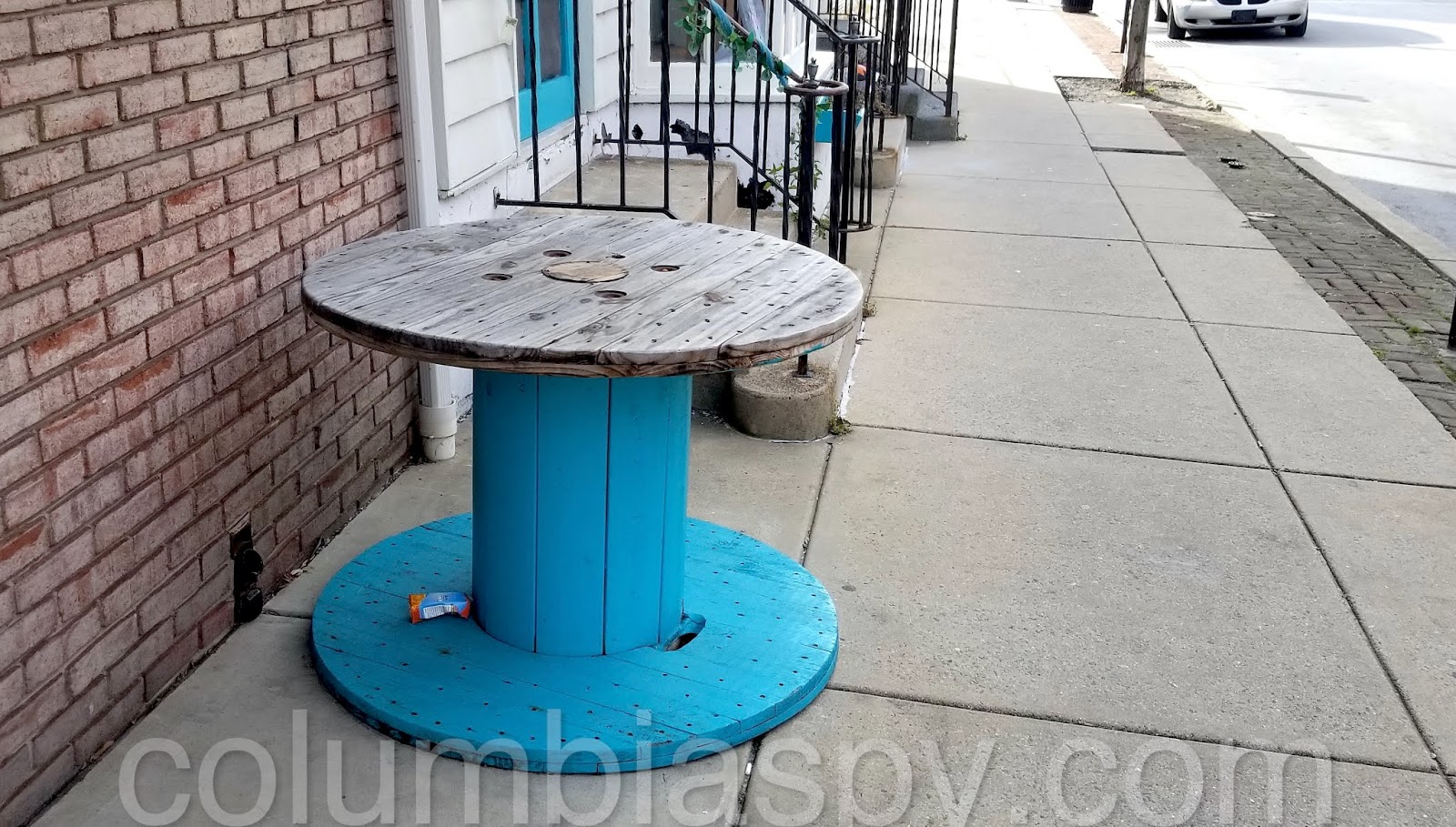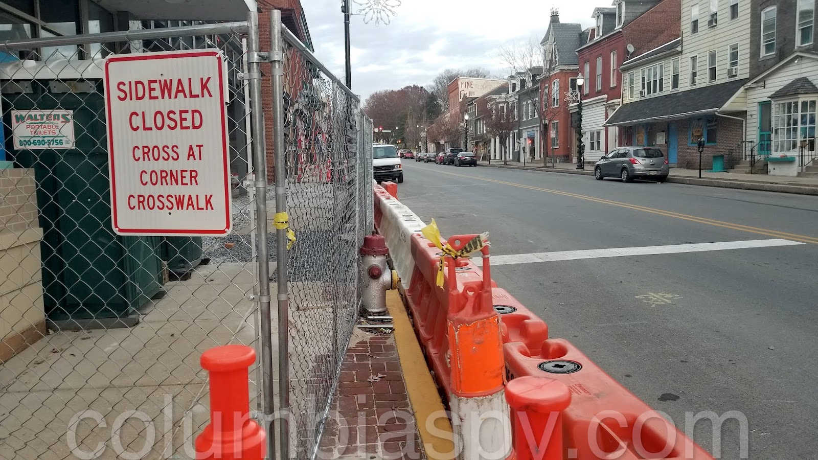 Looking back up the street, you’ll see why the sidewalk is blocked.