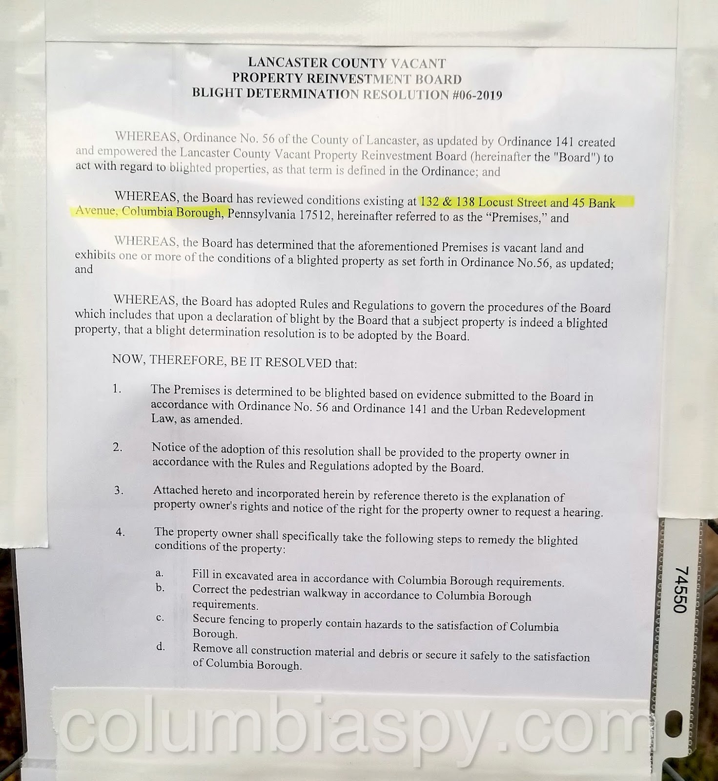 According to the notice shown here, the “premises” are now determined to be “blighted,” and remedial steps must be taken.