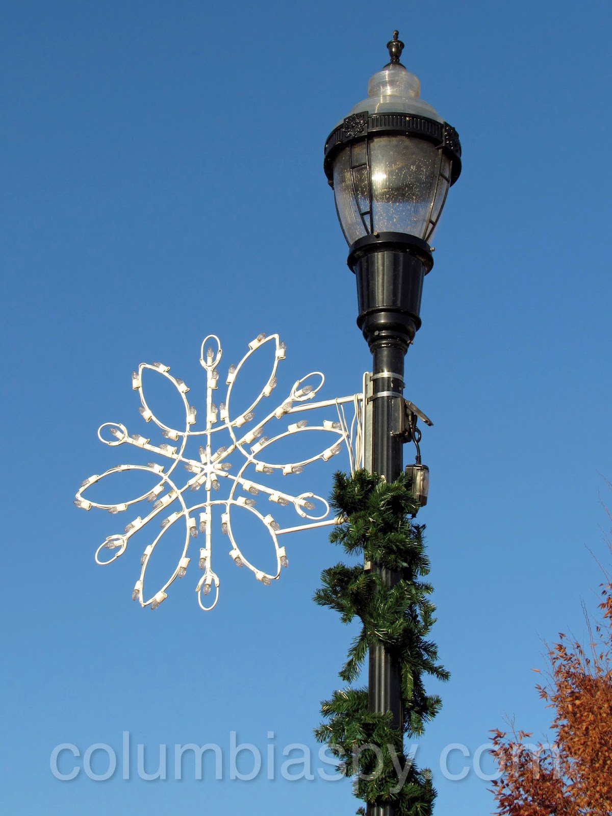 The snowflakes and garlands have been installed along several blocks of Locust Street.