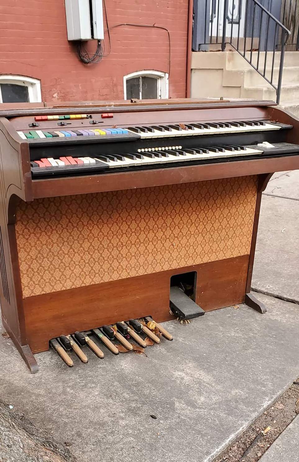 A naked organ, apparently discarded on the 200 block of Walnut