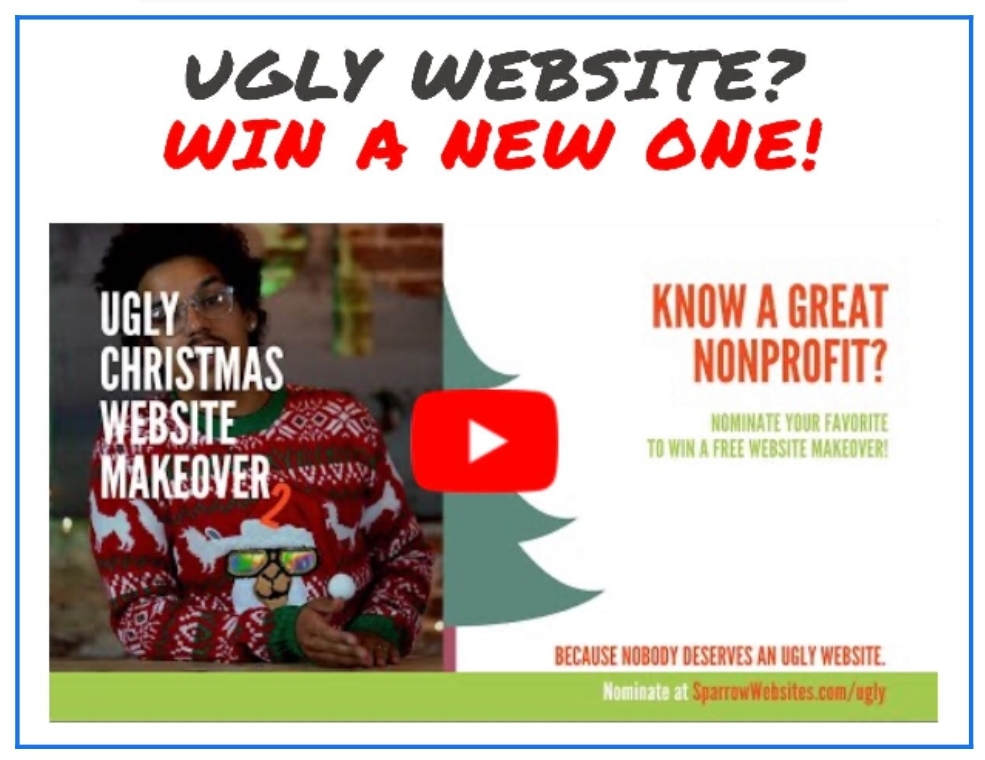 Last year, Sparrow Websites gave the gift of a website makeover to two nonprofits who were in need of updated websites. This year, you can nominate your favorite nonprofits again – and get extra votes for ugly sweater photos! It’s a simple process of nominating a nonprofit, and then boosting your “tickets in the hat” by posting an ugly sweater image, tagging @SparrowWebsites on IG or FB, and they get 5 extra votes!