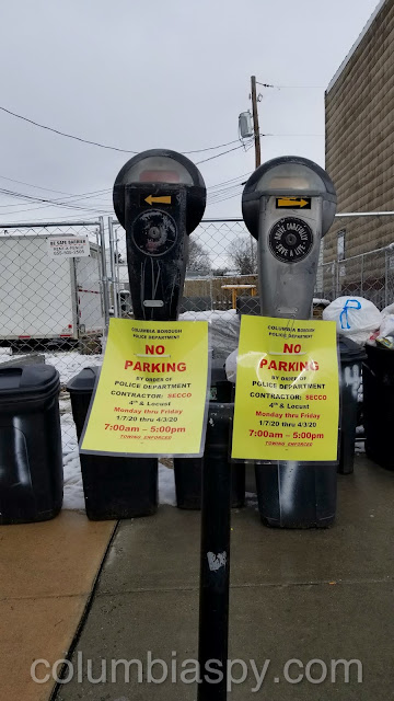 Meanwhile, here are two more parking meters out of work until April. There are several marked like this around town.